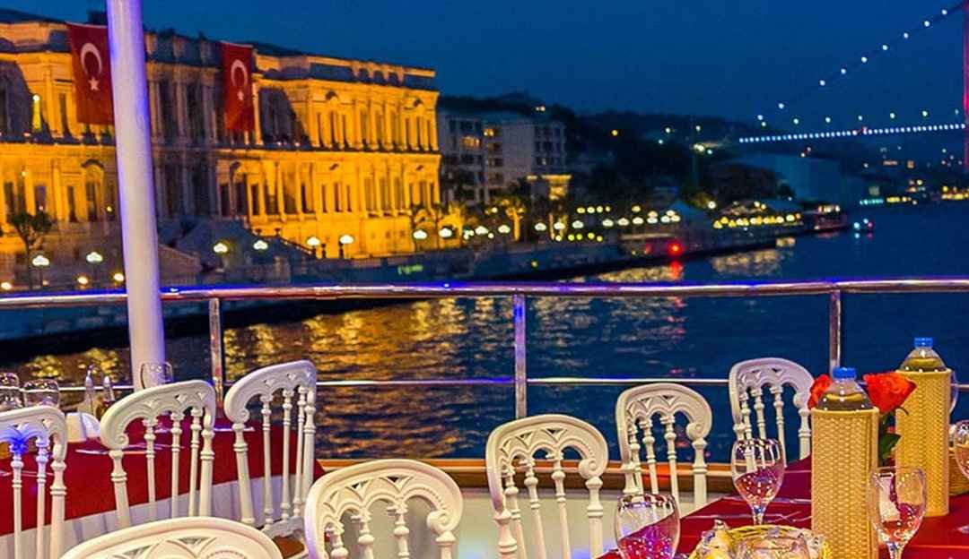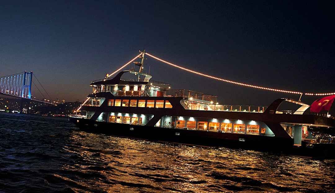 İstanbul Boğazı'nda lüks bir akşam yemeği tekne turu sunuyoruz. Avrupa ve Asya kıtalarını ayıran Boğaz’ın panoramik manzarası eşliğinde dans ederken lezzetli gurme yemeklerin tadını çıkarın.